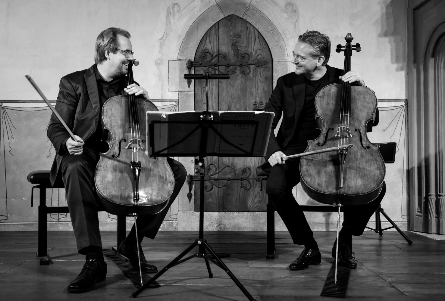 Nein, es handelt sich nicht um Sergio Leones "Spiel mir das Lied vom Tod" - es ist eines der zahlreichen, von Presse und Publikum gefeierten Konzerte von Cello Duello. Die Herren Jens Peter Maintz und Wolfgang Emanuel Schmidt führen zwar gewichtige "Waffen" und einen virtuosen Bogen ins streichende Gefecht, üben sich jedoch mehr im Mit- als im Gegeneinander. Das Duo präsentiert ein höchst unterhaltsames und zugleich künstlerisch anspruchsvolles Programm, ein "artistisches Rundumvergnügen" (Rhein-Neckar Zeitung), das neben Originalkompositionen auch Eigenbearbeitungen enthält.